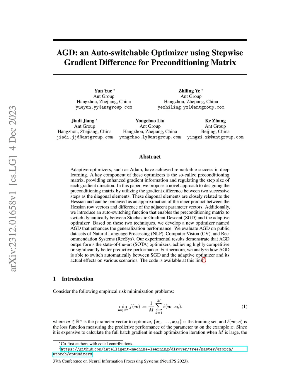 AGD: an Auto-switchable Optimizer using Stepwise Gradient Difference for