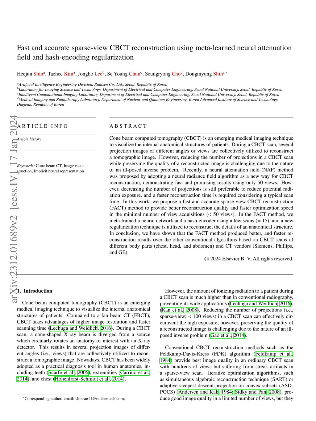 Fast and accurate sparse-view CBCT reconstruction using meta-learned