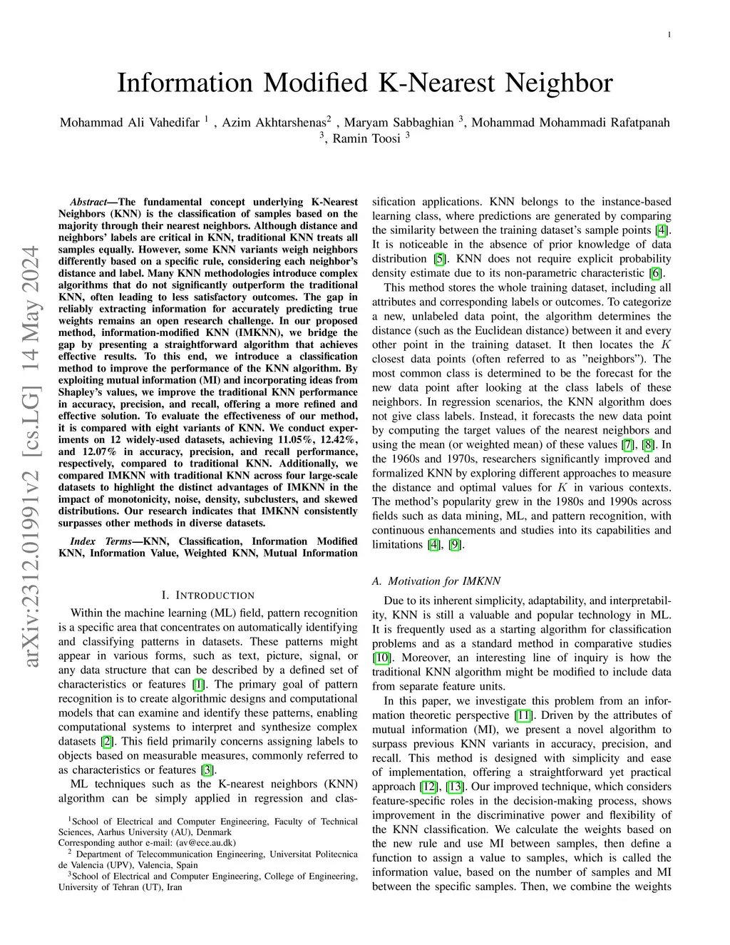 The K-Nearest Neighbors (KNN) algorithm is widely used for classification and regression; however, it suffers from limitations, including the equal treatment of all samples. We propose Information-Modified KNN (IM-KNN), a novel approach that leverages Mutual Information () and Shapley values to assign weighted values to neighbors, thereby bridging the gap in treating all samples with the same value and weight. On average, IM-KNN improves the accuracy, precision, and recall of traditional KNN by 16.80%, 17.08%, and 16.98%, respectively, across 12 benchmark datasets. Experiments on four large-scale datasets further highlight IM-KNN's robustness to noise, imbalanced data, and skewed distributions.