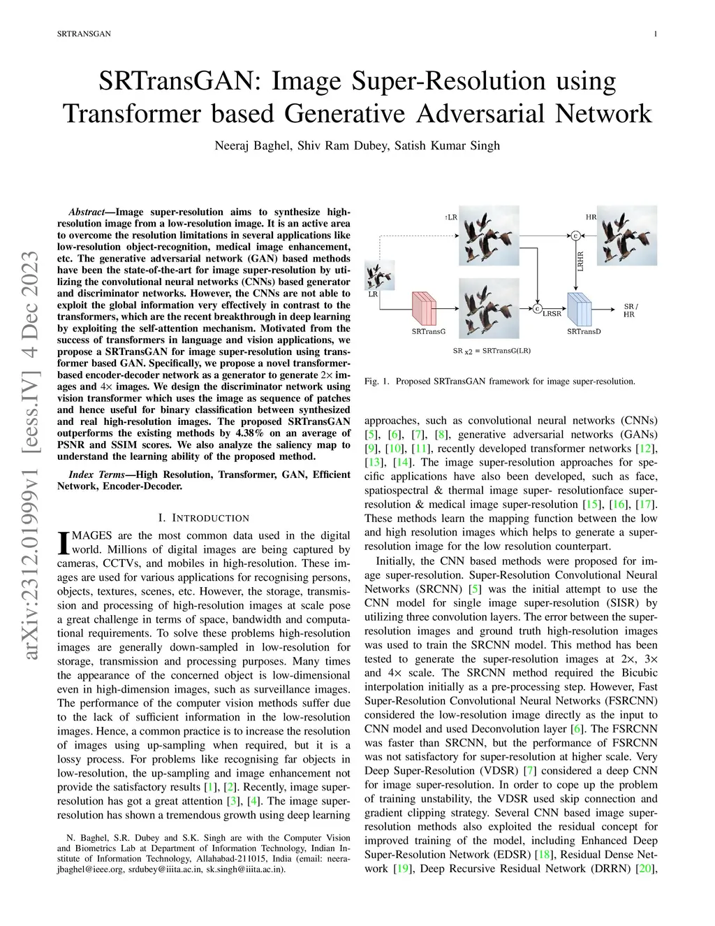 SRTransGAN: Image Super-Resolution using Transformer based Generative
