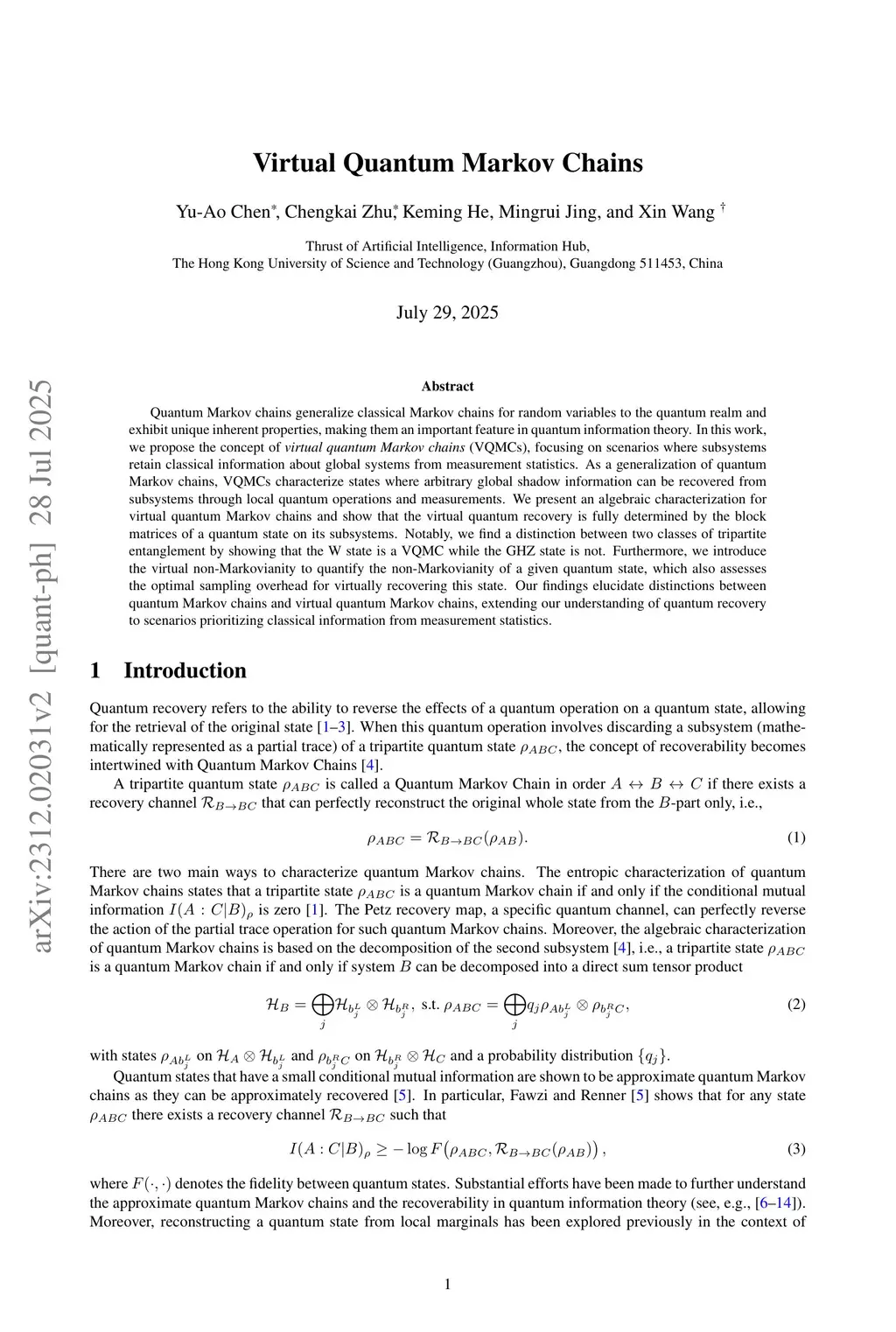 Virtual Quantum Markov Chains