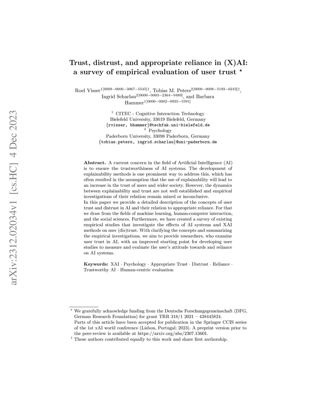 Trust, distrust, and appropriate reliance in (X)AI: a survey of