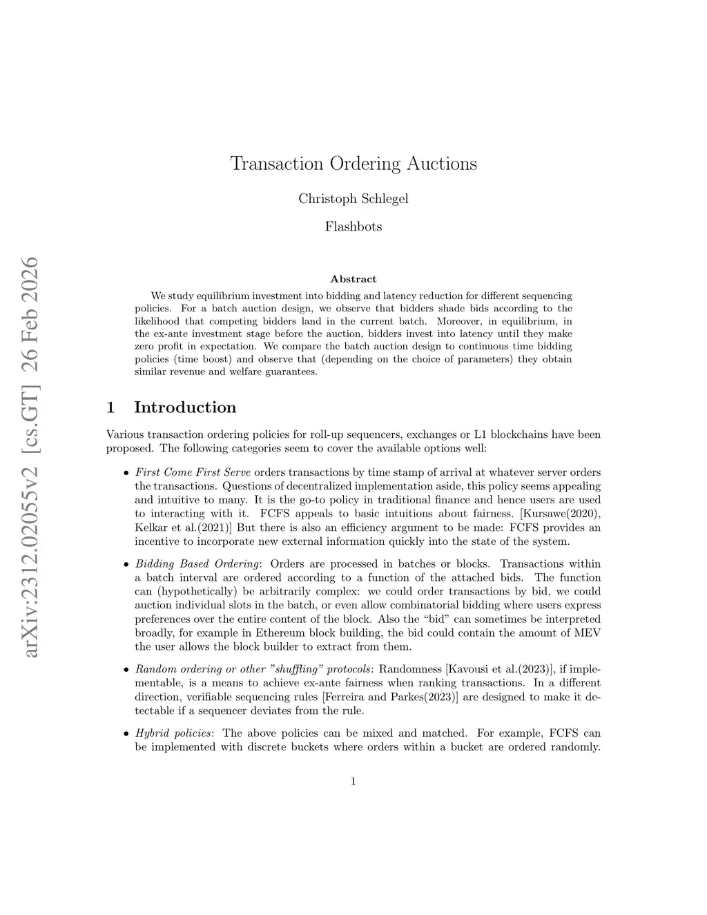 Transaction Ordering Auctions