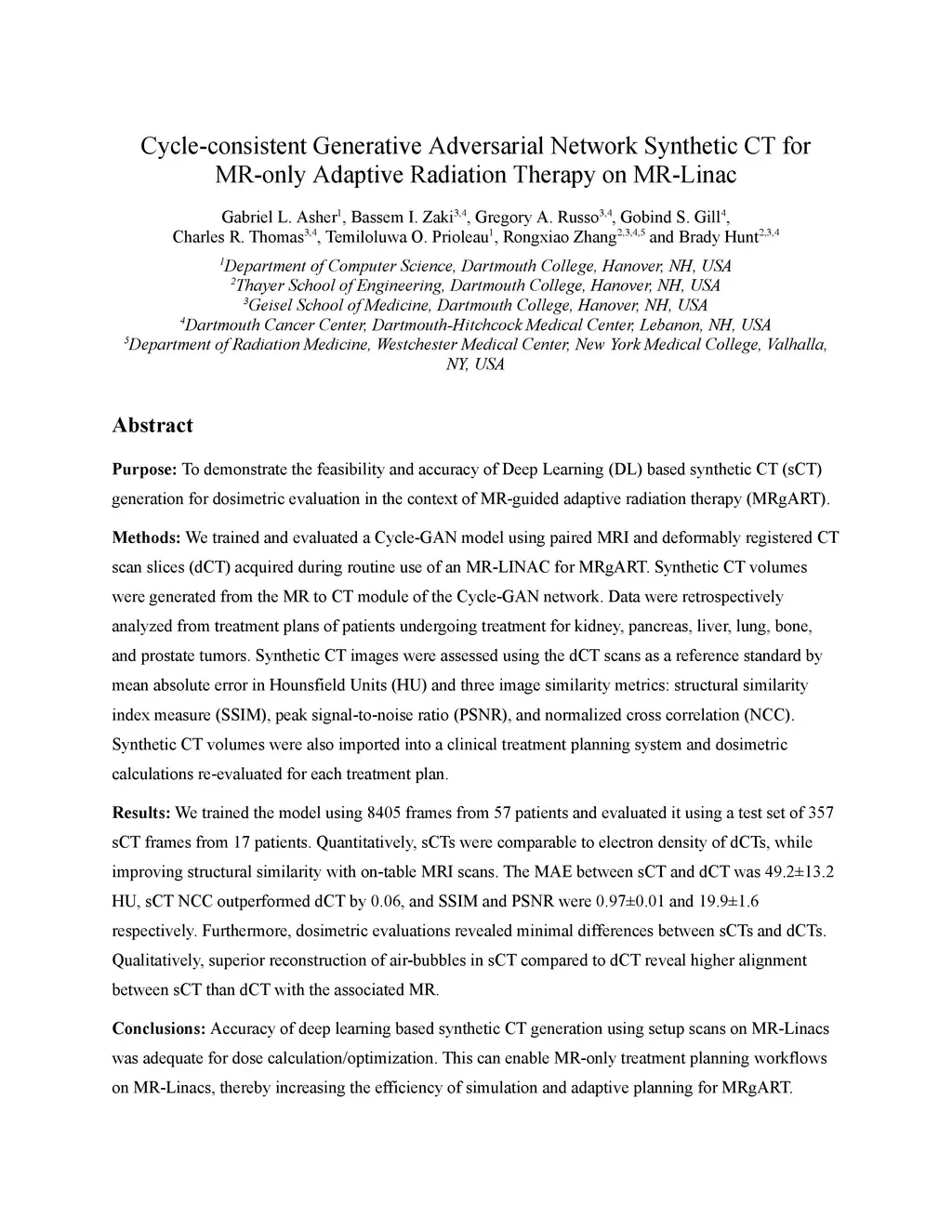 Cycle-consistent Generative Adversarial Network Synthetic CT for MR-only