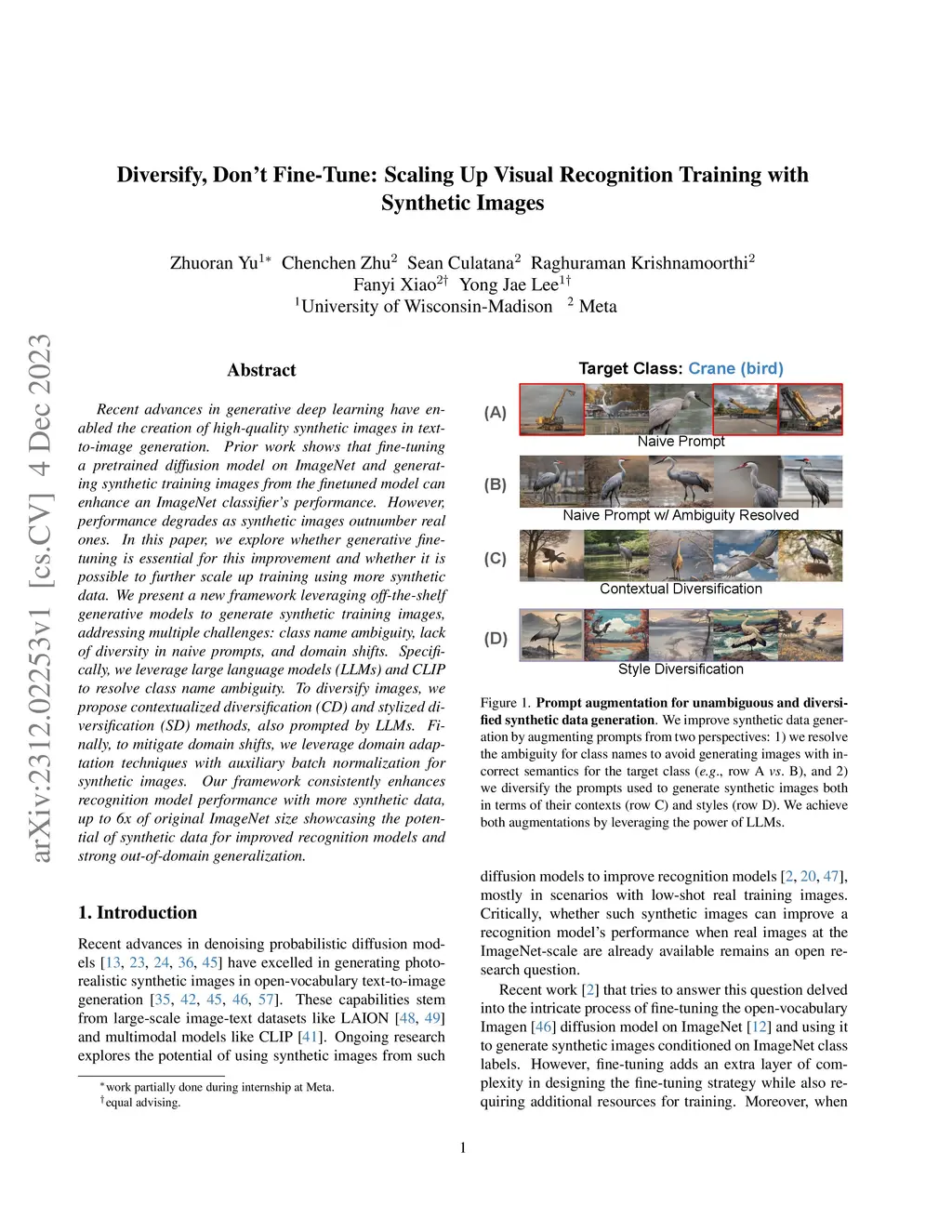 Diversify, Don't Fine-Tune: Scaling Up Visual Recognition Training with Synthetic Images