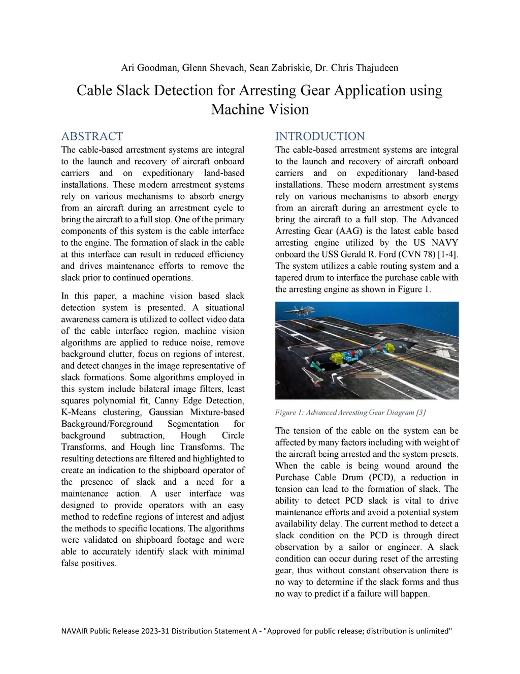 Cable Slack Detection for Arresting Gear Application using Machine