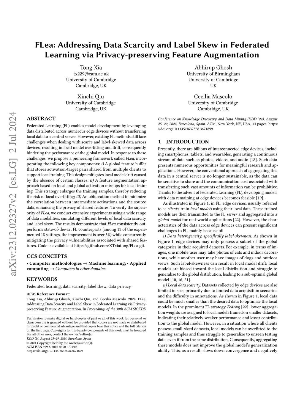 FLea: Addressing Data Scarcity and Label Skew in Federated Learning via