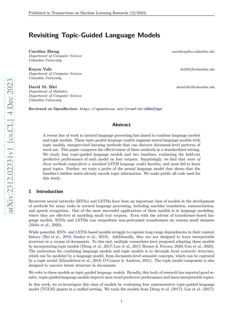 A recent line of work in natural language processing has aimed to combine language models and topic models. These topic-guided language models augment neural language models with topic models, unsupervised learning methods that can discover document-level patterns of word use. This paper compares the effectiveness of these methods in a standardized setting. We study four topic-guided language models and two baselines, evaluating the held-out predictive performance of each model on four corpora. Surprisingly, we find that none of these methods outperform a standard LSTM language model baseline, and most fail to learn good topics. Further, we train a probe of the neural language model that shows that the baseline's hidden states already encode topic information. We make public all code used for this study.
