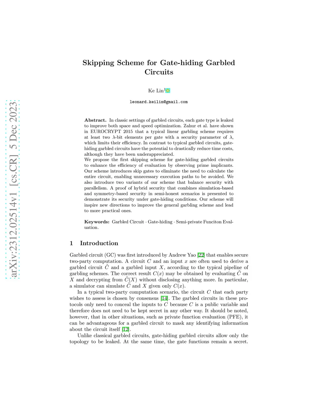 Skipping Scheme for Gate-hiding Garbled Circuits