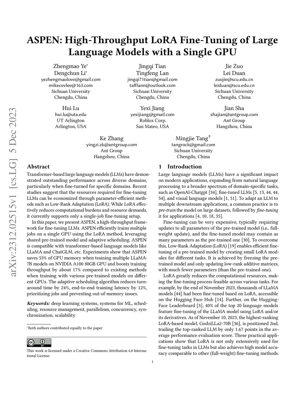ASPEN: High-Throughput LoRA Fine-Tuning of Large Language Models with a