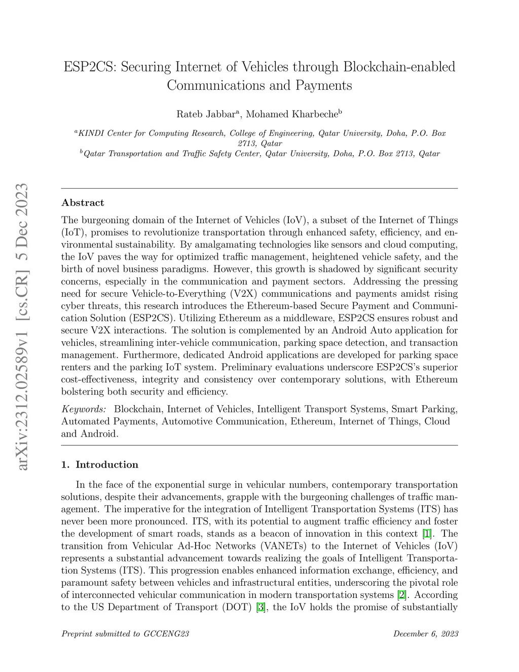 ESP2CS: Securing Internet of Vehicles through Blockchain-enabled