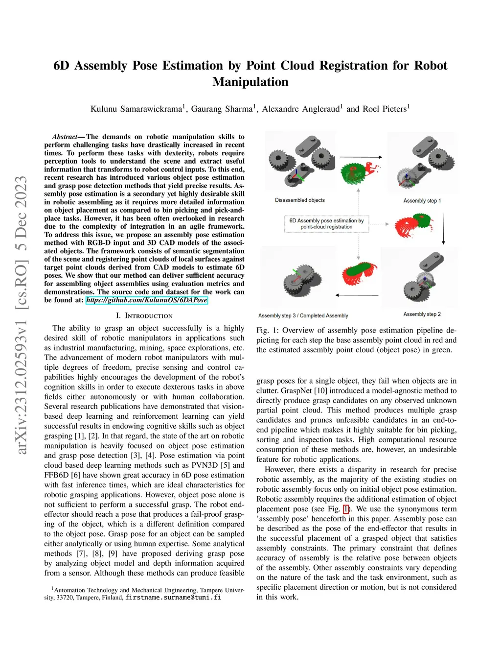 6D Assembly Pose Estimation by Point Cloud Registration for Robot