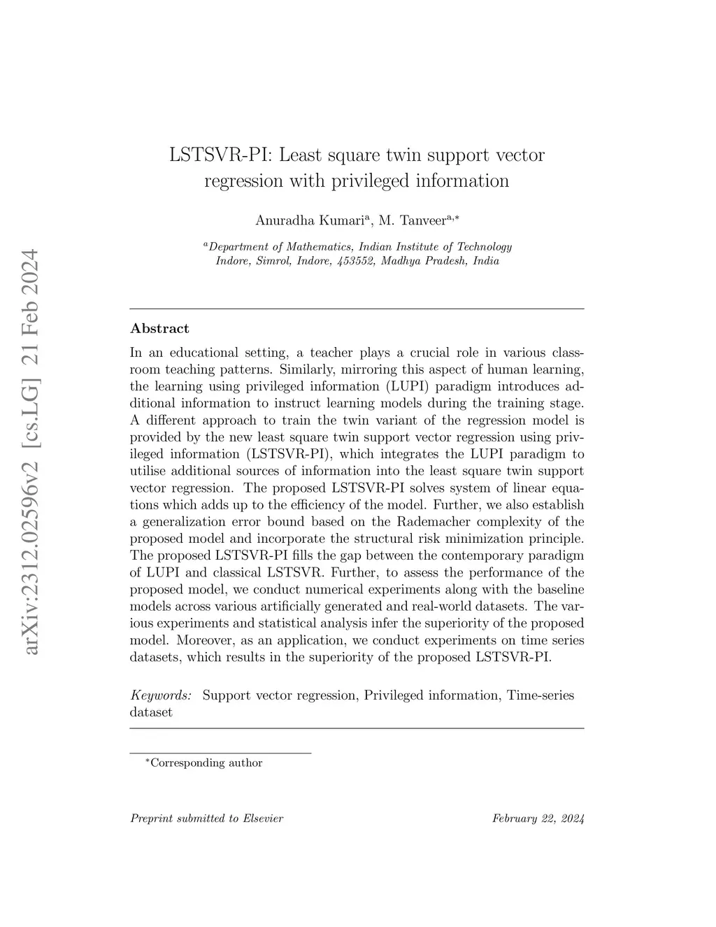 LSTSVR-PI: Least square twin support vector regression with privileged
