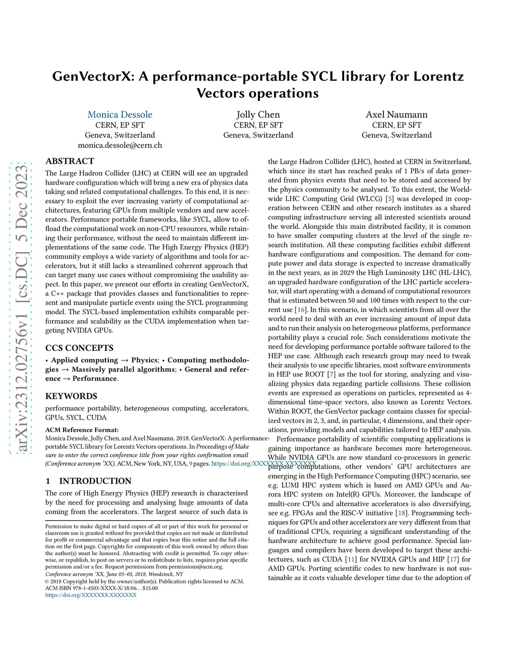 GenVectorX: A performance-portable SYCL library for Lorentz Vectors