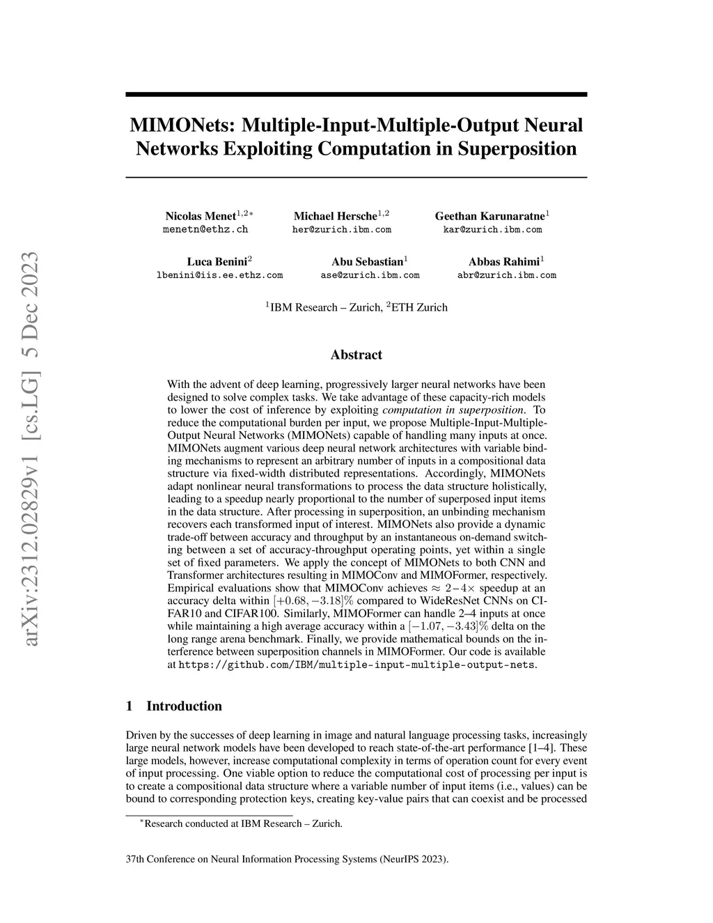 MIMONets: Multiple-Input-Multiple-Output Neural Networks Exploiting