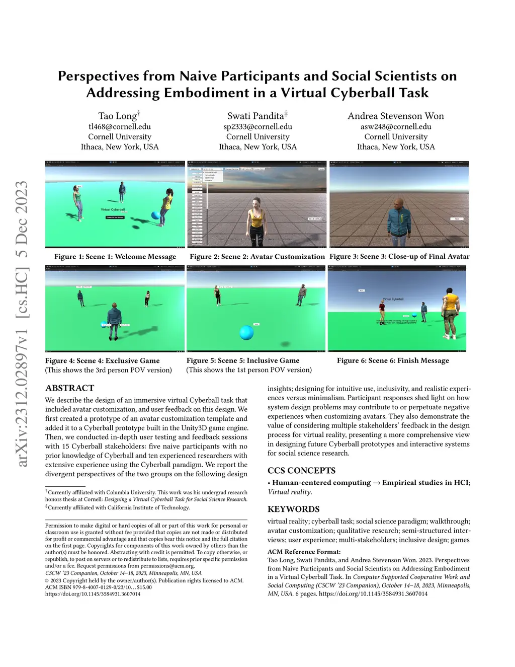 Researchers on Addressing Embodiment in a Virtual Cyberball Task
