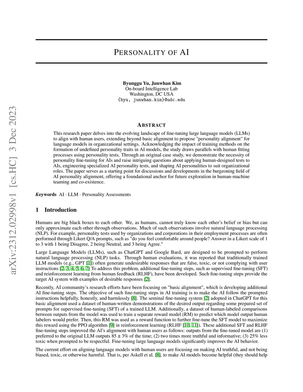 This research paper delves into the evolving landscape of fine-tuning large language models (LLMs) to align with human users, extending beyond basic alignment to propose "personality alignment" for language models in organizational settings. Acknowledging the impact of training methods on the formation of undefined personality traits in AI models, the study draws parallels with human fitting processes using personality tests. Through an original case study, we demonstrate the necessity of personality fine-tuning for AIs and raise intriguing questions about applying human-designed tests to AIs, engineering specialized AI personality tests, and shaping AI personalities to suit organizational roles. The paper serves as a starting point for discussions and developments in the burgeoning field of AI personality alignment, offering a foundational anchor for future exploration in human-machine teaming and co-existence.