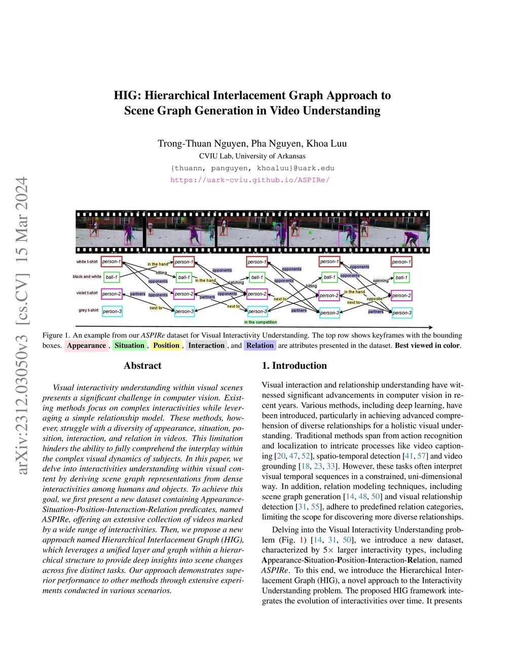 Visual interactivity understanding within visual scenes presents a significant challenge in computer vision. Existing methods focus on complex interactivities while leveraging a simple relationship model. These methods, however, struggle with a diversity of appearance, situation, position, interaction, and relation in videos. This limitation hinders the ability to fully comprehend the interplay within the complex visual dynamics of subjects. In this paper, we delve into interactivities understanding within visual content by deriving scene graph representations from dense interactivities among humans and objects. To achieve this goal, we first present a new dataset containing Appearance-Situation-Position-Interaction-Relation predicates, named ASPIRe, offering an extensive collection of videos marked by a wide range of interactivities. Then, we propose a new approach named Hierarchical Interlacement Graph (HIG), which leverages a unified layer and graph within a hierarchical structure to provide deep insights into scene changes across five distinct tasks. Our approach demonstrates superior performance to other methods through extensive experiments conducted in various scenarios.