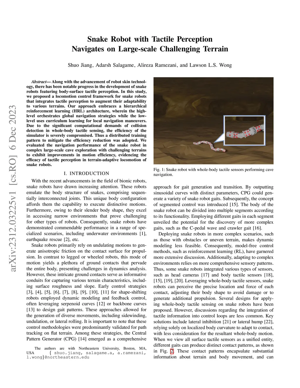 Snake Robot with Tactile Perception Navigates on Large-scale Challenging