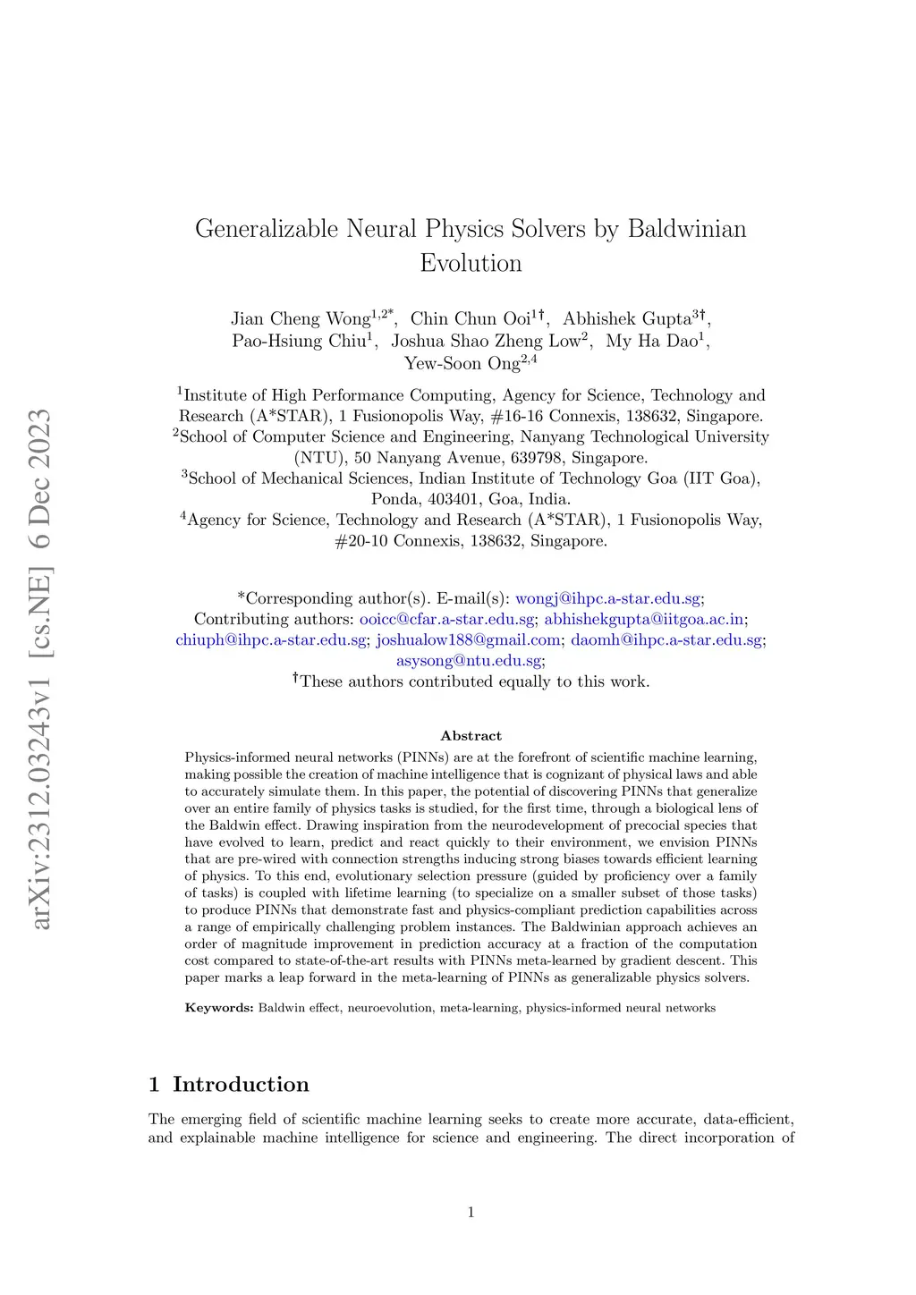 Evolutionary Optimization of Physics-Informed Neural Networks: Advancing Generalizability by the Baldwin Effect