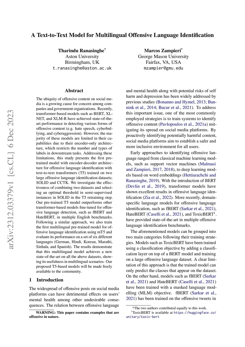 A Text-to-Text Model for Multilingual Offensive Language Identification