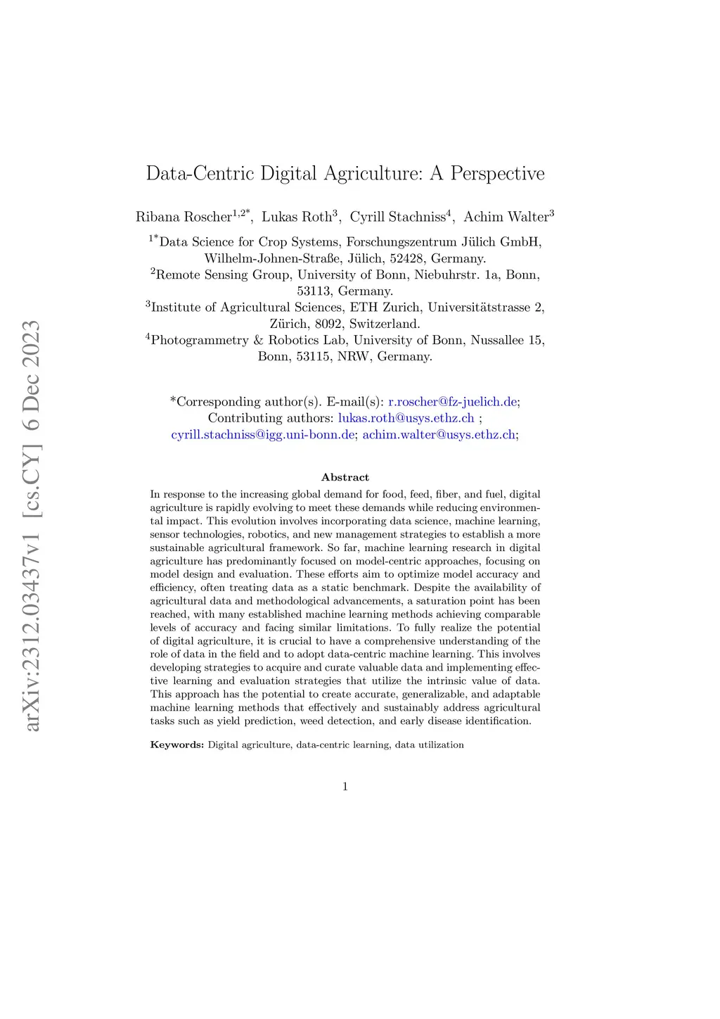 In response to the increasing global demand for food, feed, fiber, and fuel, digital agriculture is rapidly evolving to meet these demands while reducing environmental impact. This evolution involves incorporating data science, machine learning, sensor technologies, robotics, and new management strategies to establish a more sustainable agricultural framework. So far, machine learning research in digital agriculture has predominantly focused on model-centric approaches, focusing on model design and evaluation. These efforts aim to optimize model accuracy and efficiency, often treating data as a static benchmark. Despite the availability of agricultural data and methodological advancements, a saturation point has been reached, with many established machine learning methods achieving comparable levels of accuracy and facing similar limitations. To fully realize the potential of digital agriculture, it is crucial to have a comprehensive understanding of the role of data in the field and to adopt data-centric machine learning. This involves developing strategies to acquire and curate valuable data and implementing effective learning and evaluation strategies that utilize the intrinsic value of data. This approach has the potential to create accurate, generalizable, and adaptable machine learning methods that effectively and sustainably address agricultural tasks such as yield prediction, weed detection, and early disease identification