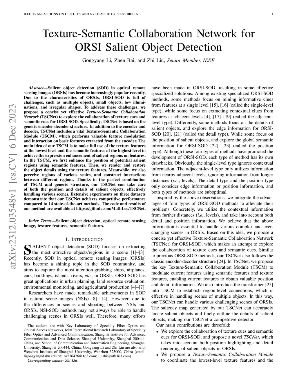 Texture-Semantic Collaboration Network for ORSI Salient Object Detection