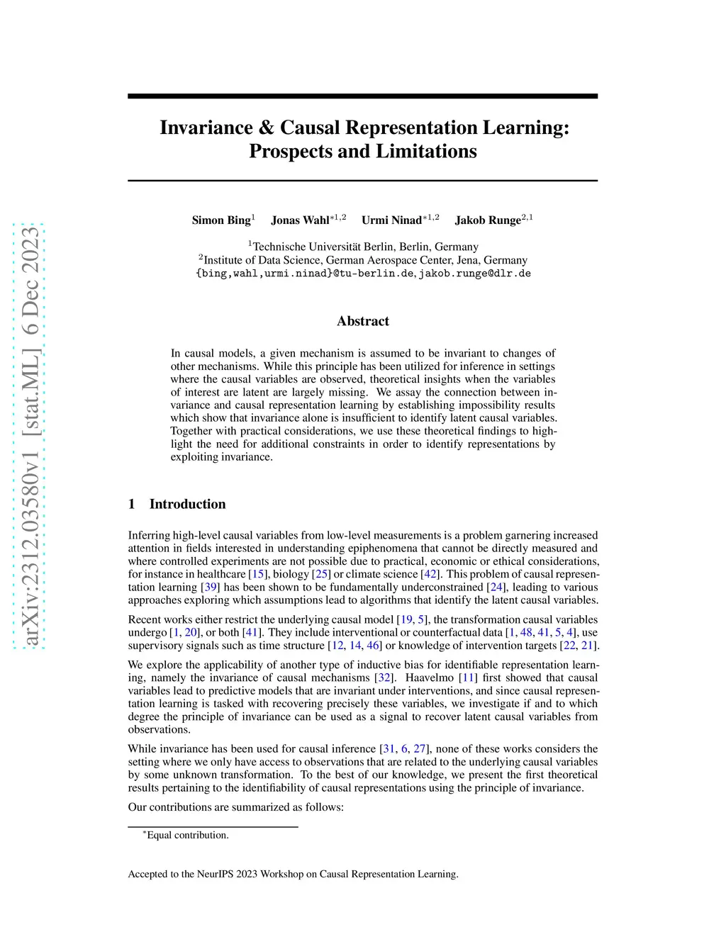 Invariance & Causal Representation Learning: Prospects and Limitations