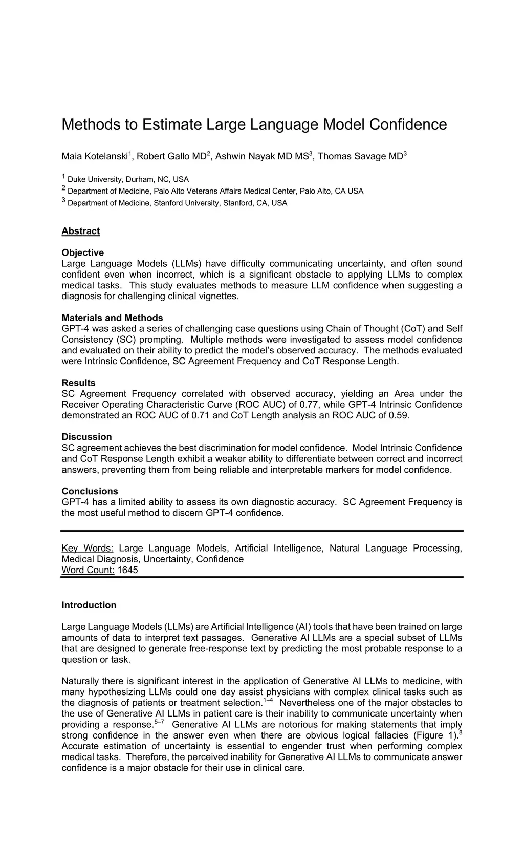 Large Language Models have difficulty communicating uncertainty, which is a significant obstacle to applying LLMs to complex medical tasks. This study evaluates methods to measure LLM confidence when suggesting a diagnosis for challenging clinical vignettes. GPT4 was asked a series of challenging case questions using Chain of Thought and Self Consistency prompting. Multiple methods were investigated to assess model confidence and evaluated on their ability to predict the models observed accuracy. The methods evaluated were Intrinsic Confidence, SC Agreement Frequency and CoT Response Length. SC Agreement Frequency correlated with observed accuracy, yielding a higher Area under the Receiver Operating Characteristic Curve compared to Intrinsic Confidence and CoT Length analysis. SC agreement is the most useful proxy for model confidence, especially for medical diagnosis. Model Intrinsic Confidence and CoT Response Length exhibit a weaker ability to differentiate between correct and incorrect answers, preventing them from being reliable and interpretable markers for model confidence. We conclude GPT4 has a limited ability to assess its own diagnostic accuracy. SC Agreement Frequency is the most useful method to measure GPT4 confidence.