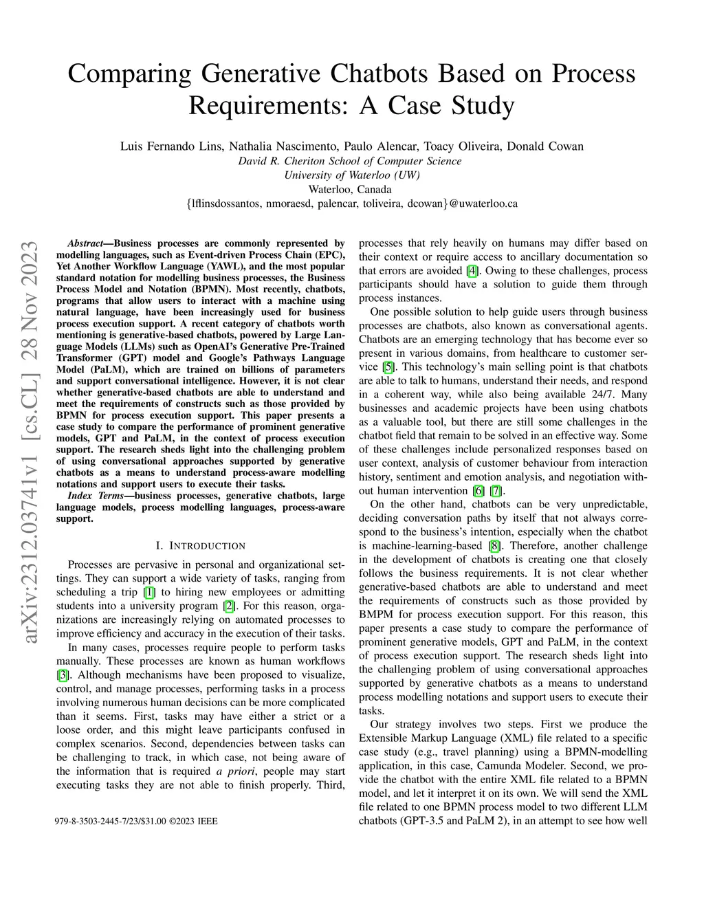 Business processes are commonly represented by modelling languages, such as Event-driven Process Chain (EPC), Yet Another Workflow Language (YAWL), and the most popular standard notation for modelling business processes, the Business Process Model and Notation (BPMN). Most recently, chatbots, programs that allow users to interact with a machine using natural language, have been increasingly used for business process execution support. A recent category of chatbots worth mentioning is generative-based chatbots, powered by Large Language Models (LLMs) such as OpenAI's Generative Pre-Trained Transformer (GPT) model and Google's Pathways Language Model (PaLM), which are trained on billions of parameters and support conversational intelligence. However, it is not clear whether generative-based chatbots are able to understand and meet the requirements of constructs such as those provided by BPMN for process execution support. This paper presents a case study to compare the performance of prominent generative models, GPT and PaLM, in the context of process execution support. The research sheds light into the challenging problem of using conversational approaches supported by generative chatbots as a means to understand process-aware modelling notations and support users to execute their tasks.