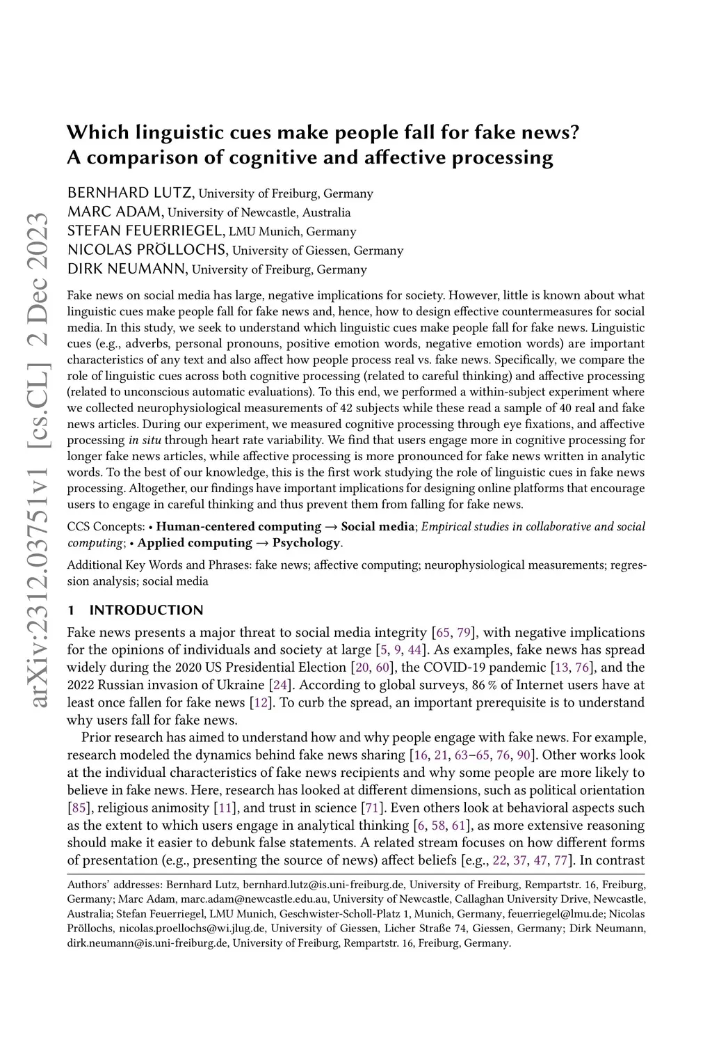 Which linguistic cues make people fall for fake news? A comparison of
