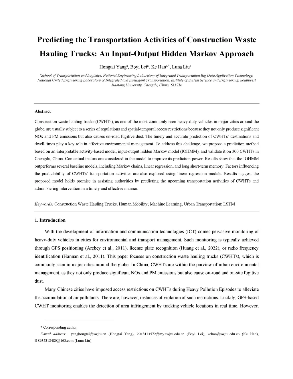 Predicting the Transportation Activities of Construction Waste Hauling