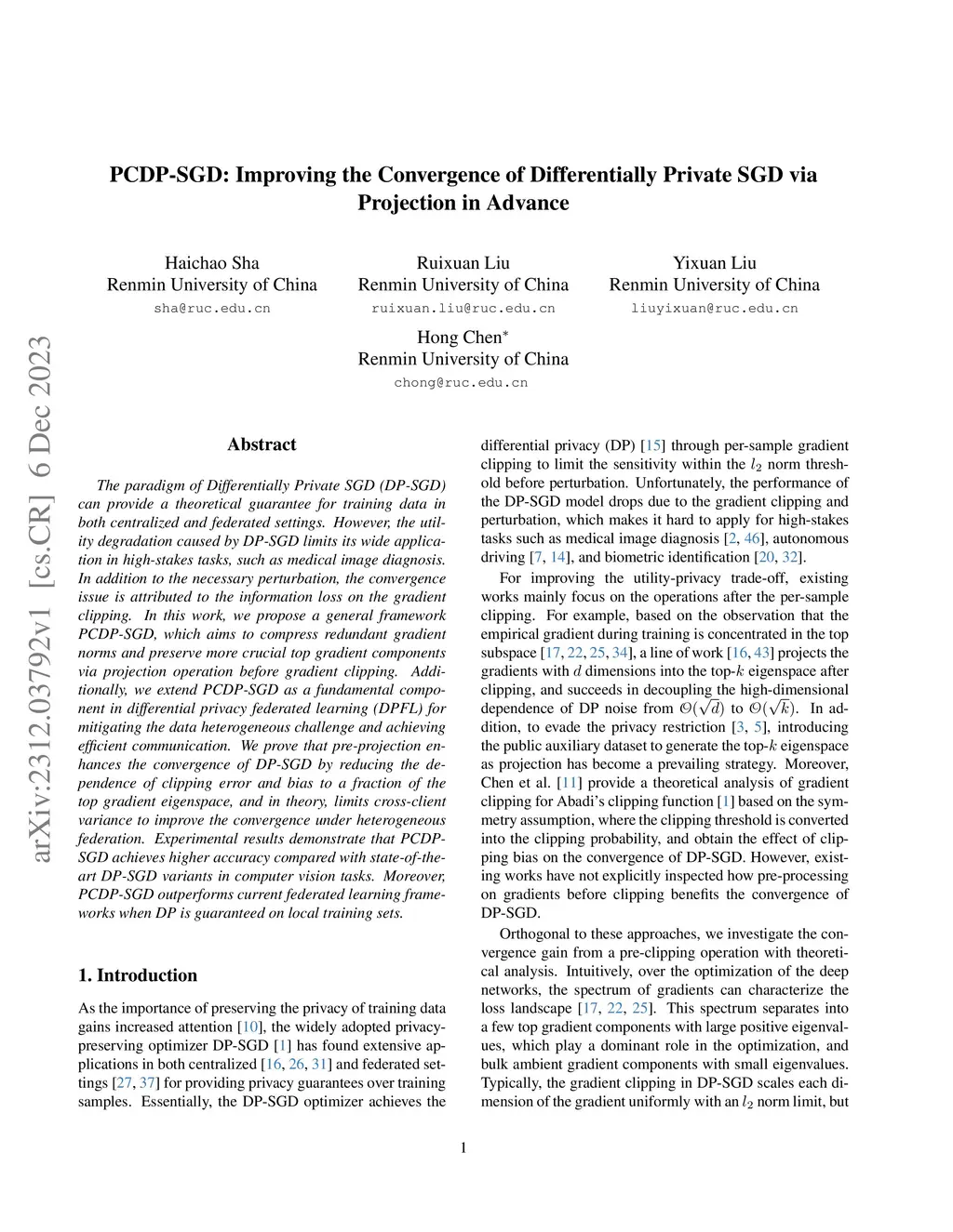 The paradigm of Differentially Private SGD~(DP-SGD) can provide a theoretical guarantee for training data in both centralized and federated settings. However, the utility degradation caused by DP-SGD limits its wide application in high-stakes tasks, such as medical image diagnosis. In addition to the necessary perturbation, the convergence issue is attributed to the information loss on the gradient clipping. In this work, we propose a general framework PCDP-SGD, which aims to compress redundant gradient norms and preserve more crucial top gradient components via projection operation before gradient clipping. Additionally, we extend PCDP-SGD as a fundamental component in differential privacy federated learning~(DPFL) for mitigating the data heterogeneous challenge and achieving efficient communication. We prove that pre-projection enhances the convergence of DP-SGD by reducing the dependence of clipping error and bias to a fraction of the top gradient eigenspace, and in theory, limits cross-client variance to improve the convergence under heterogeneous federation. Experimental results demonstrate that PCDP-SGD achieves higher accuracy compared with state-of-the-art DP-SGD variants in computer vision tasks. Moreover, PCDP-SGD outperforms current federated learning frameworks when DP is guaranteed on local training sets.