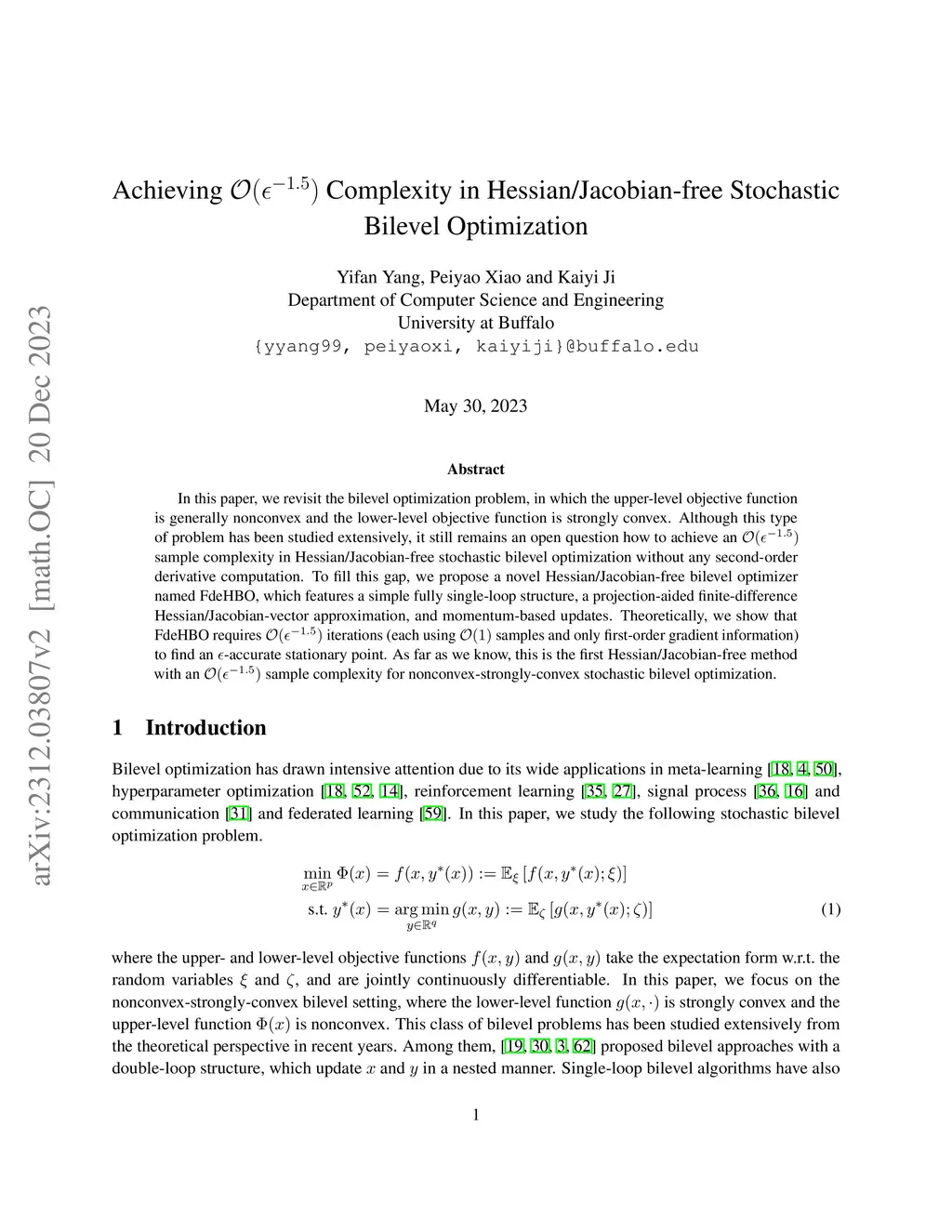 In this paper, we revisit the bilevel optimization problem, in which the upper-level objective function is generally nonconvex and the lower-level objective function is strongly convex. Although this type of problem has been studied extensively, it still remains an open question how to achieve an sample complexity in Hessian/Jacobian-free stochastic bilevel optimization without any second-order derivative computation. To fill this gap, we propose a novel Hessian/Jacobian-free bilevel optimizer named FdeHBO, which features a simple fully single-loop structure, a projection-aided finite-difference Hessian/Jacobian-vector approximation, and momentum-based updates. Theoretically, we show that FdeHBO requires iterations (each using samples and only first-order gradient information) to find an -accurate stationary point. As far as we know, this is the first Hessian/Jacobian-free method with an sample complexity for nonconvex-strongly-convex stochastic bilevel optimization.