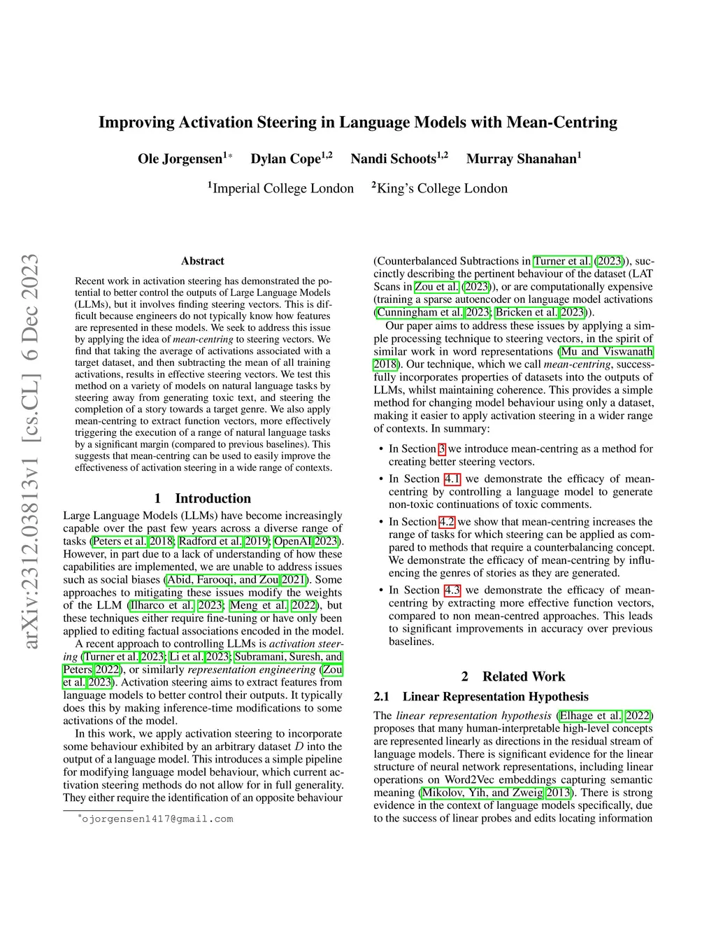 Recent work in activation steering has demonstrated the potential to better control the outputs of Large Language Models (LLMs), but it involves finding steering vectors. This is difficult because engineers do not typically know how features are represented in these models. We seek to address this issue by applying the idea of mean-centring to steering vectors. We find that taking the average of activations associated with a target dataset, and then subtracting the mean of all training activations, results in effective steering vectors. We test this method on a variety of models on natural language tasks by steering away from generating toxic text, and steering the completion of a story towards a target genre. We also apply mean-centring to extract function vectors, more effectively triggering the execution of a range of natural language tasks by a significant margin (compared to previous baselines). This suggests that mean-centring can be used to easily improve the effectiveness of activation steering in a wide range of contexts.
