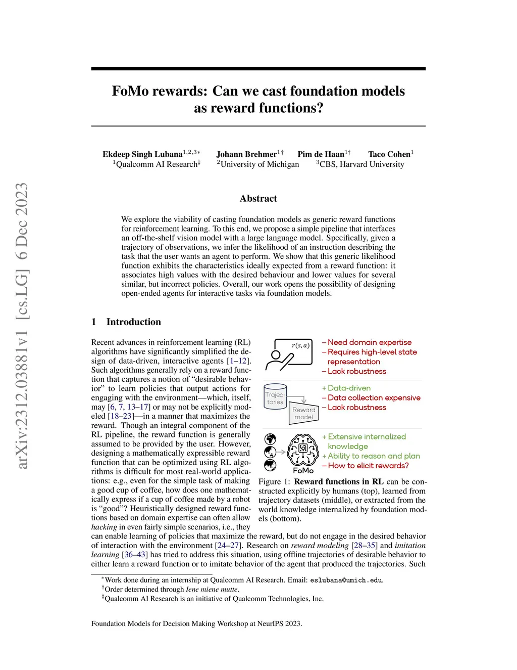 FoMo Rewards: Can we cast foundation models as reward functions?
