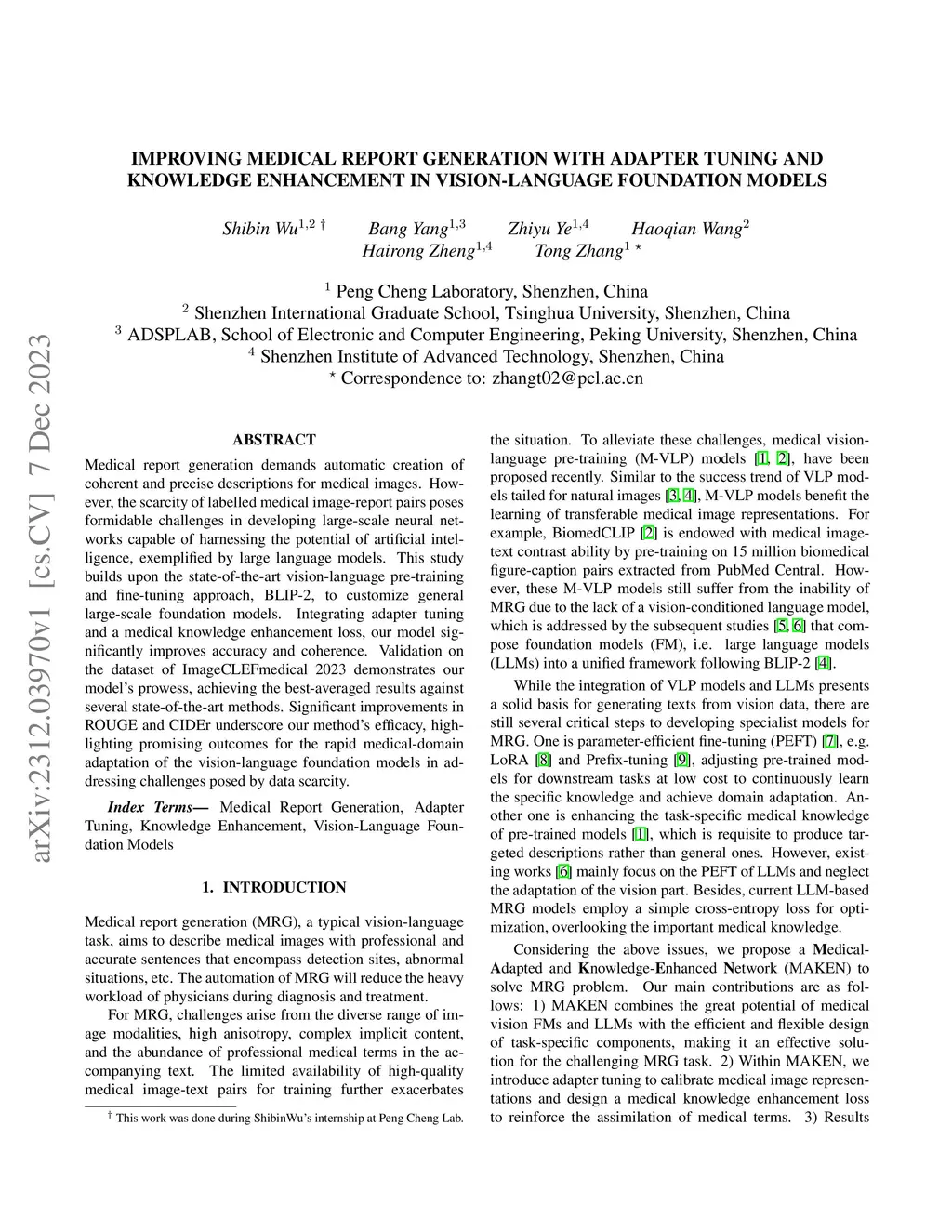 Improving Medical Report Generation with Adapter Tuning and Knowledge
