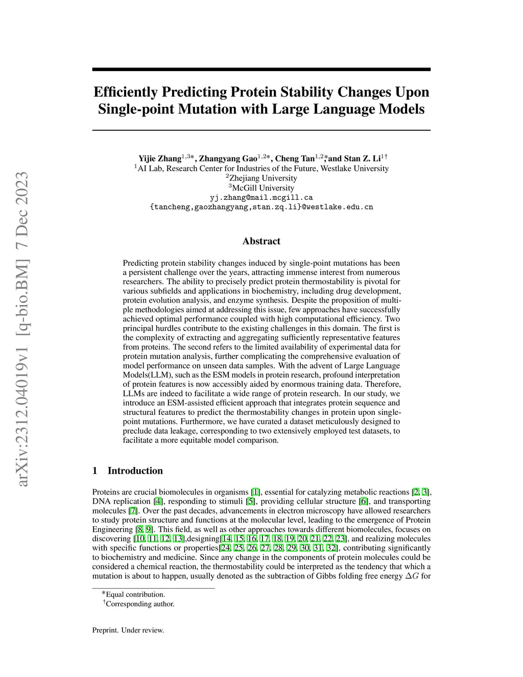 Predicting protein stability changes induced by single-point mutations has been a persistent challenge over the years, attracting immense interest from numerous researchers. The ability to precisely predict protein thermostability is pivotal for various subfields and applications in biochemistry, including drug development, protein evolution analysis, and enzyme synthesis. Despite the proposition of multiple methodologies aimed at addressing this issue, few approaches have successfully achieved optimal performance coupled with high computational efficiency. Two principal hurdles contribute to the existing challenges in this domain. The first is the complexity of extracting and aggregating sufficiently representative features from proteins. The second refers to the limited availability of experimental data for protein mutation analysis, further complicating the comprehensive evaluation of model performance on unseen data samples. With the advent of Large Language Models(LLM), such as the ESM models in protein research, profound interpretation of protein features is now accessibly aided by enormous training data. Therefore, LLMs are indeed to facilitate a wide range of protein research. In our study, we introduce an ESM-assisted efficient approach that integrates protein sequence and structural features to predict the thermostability changes in protein upon single-point mutations. Furthermore, we have curated a dataset meticulously designed to preclude data leakage, corresponding to two extensively employed test datasets, to facilitate a more equitable model comparison.