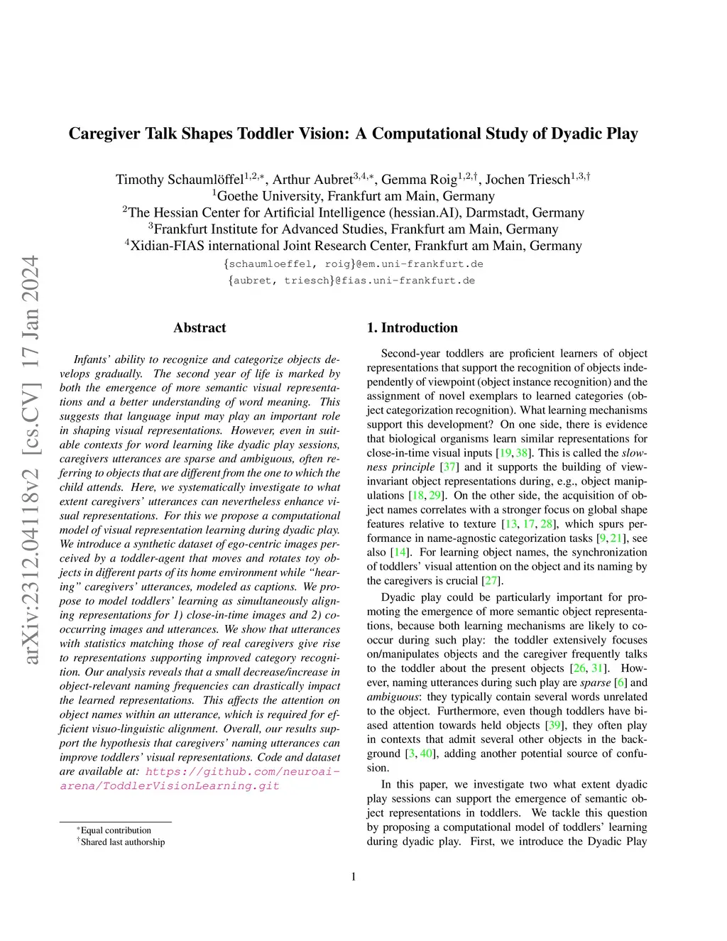 Caregiver Talk Shapes Toddler Vision: A Computational Study of Dyadic