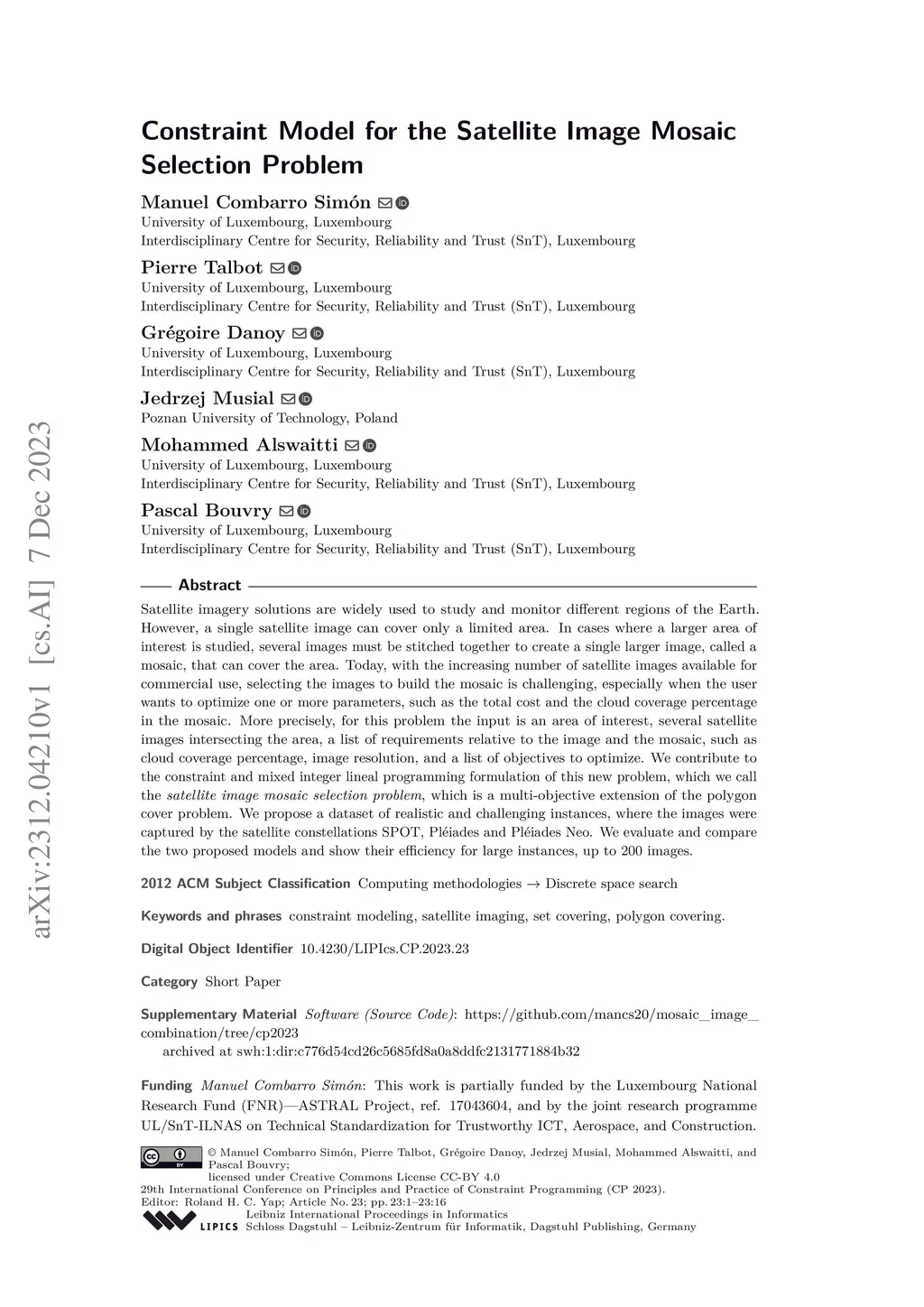 Constraint Model for the Satellite Image Mosaic Selection Problem