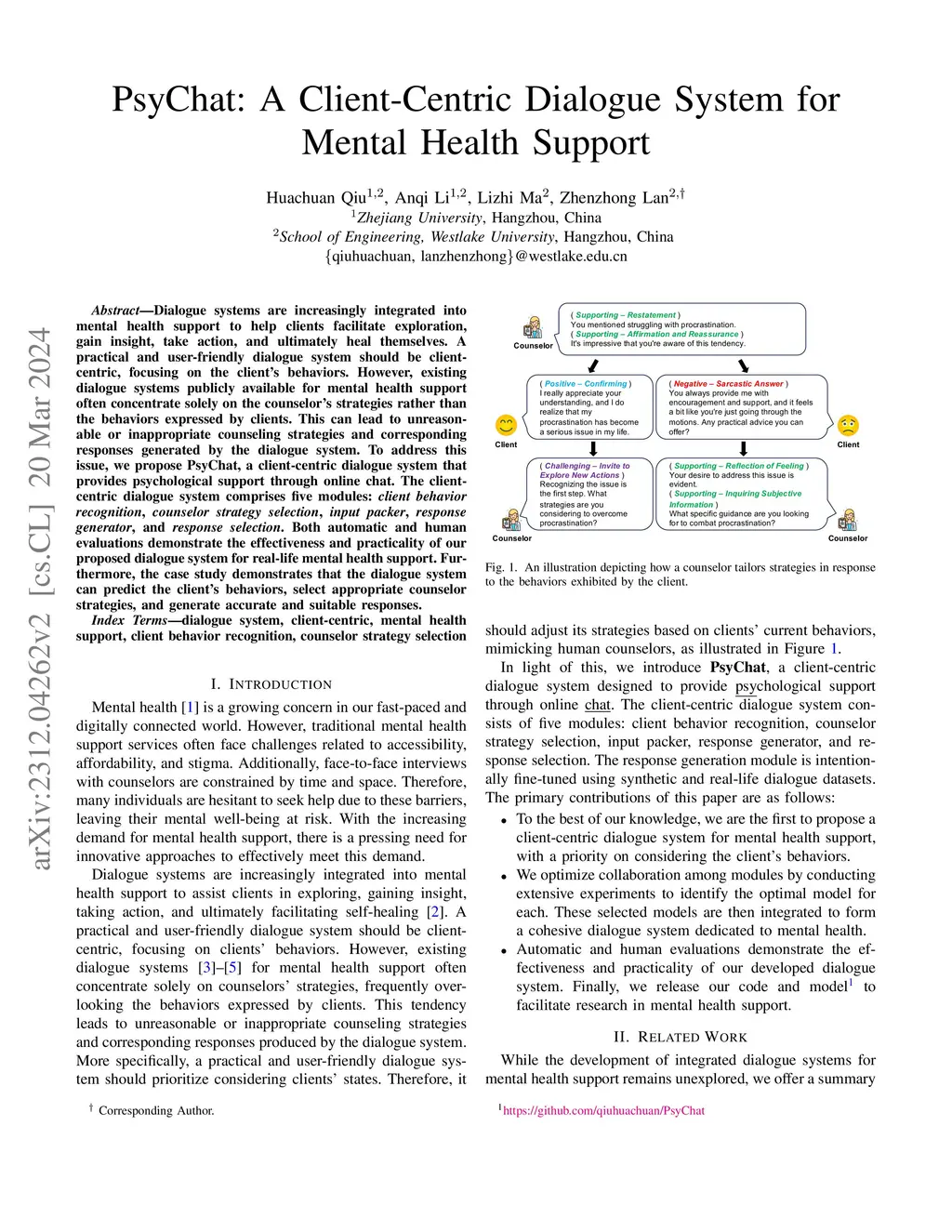 PsyChat: A Client-Centric Dialogue System for Mental Health Support