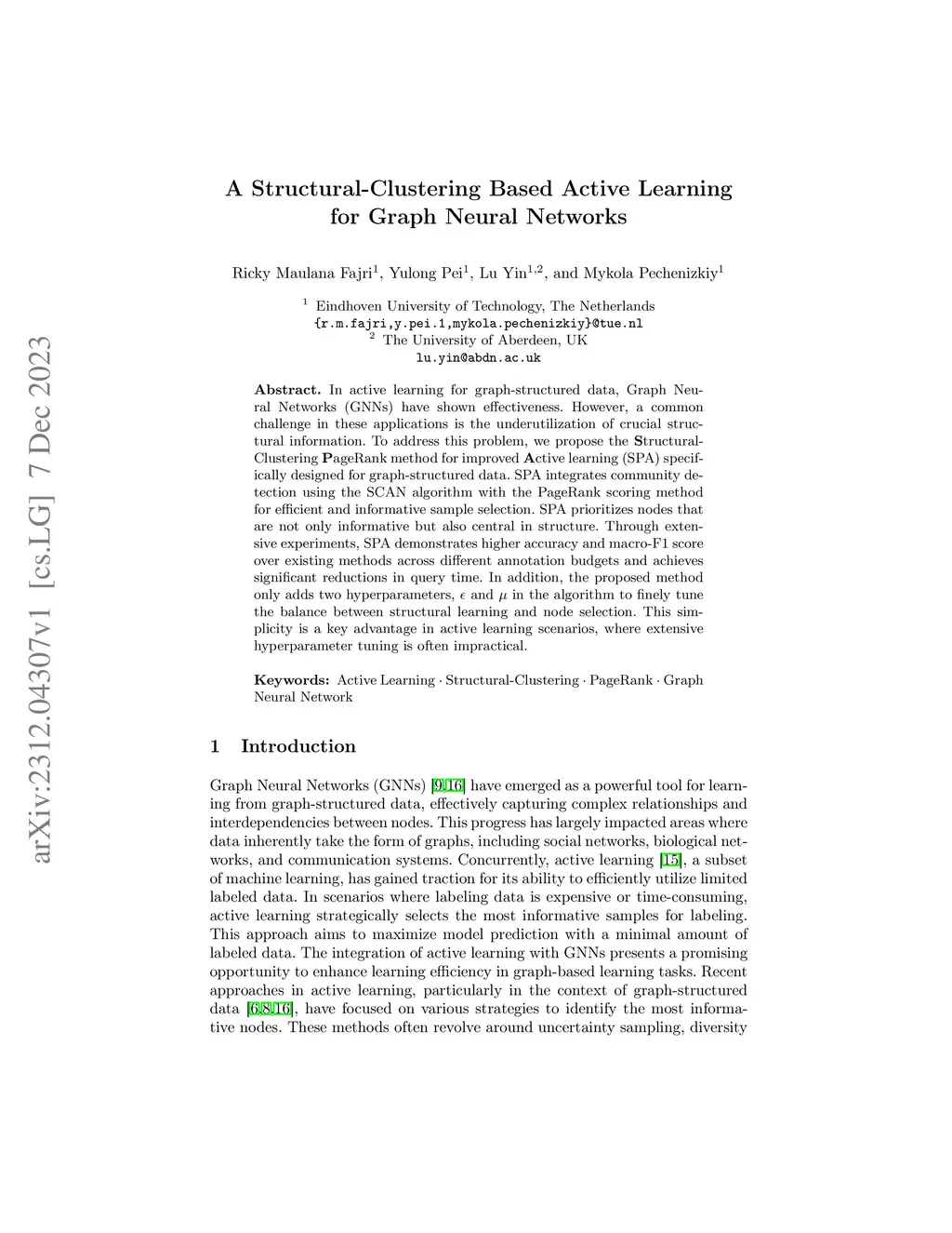 In active learning for graph-structured data, Graph Neural Networks (GNNs) have shown effectiveness. However, a common challenge in these applications is the underutilization of crucial structural information. To address this problem, we propose the Structural-Clustering PageRank method for improved Active learning (SPA) specifically designed for graph-structured data. SPA integrates community detection using the SCAN algorithm with the PageRank scoring method for efficient and informative sample selection. SPA prioritizes nodes that are not only informative but also central in structure. Through extensive experiments, SPA demonstrates higher accuracy and macro-F1 score over existing methods across different annotation budgets and achieves significant reductions in query time. In addition, the proposed method only adds two hyperparameters, and in the algorithm to finely tune the balance between structural learning and node selection. This simplicity is a key advantage in active learning scenarios, where extensive hyperparameter tuning is often impractical.