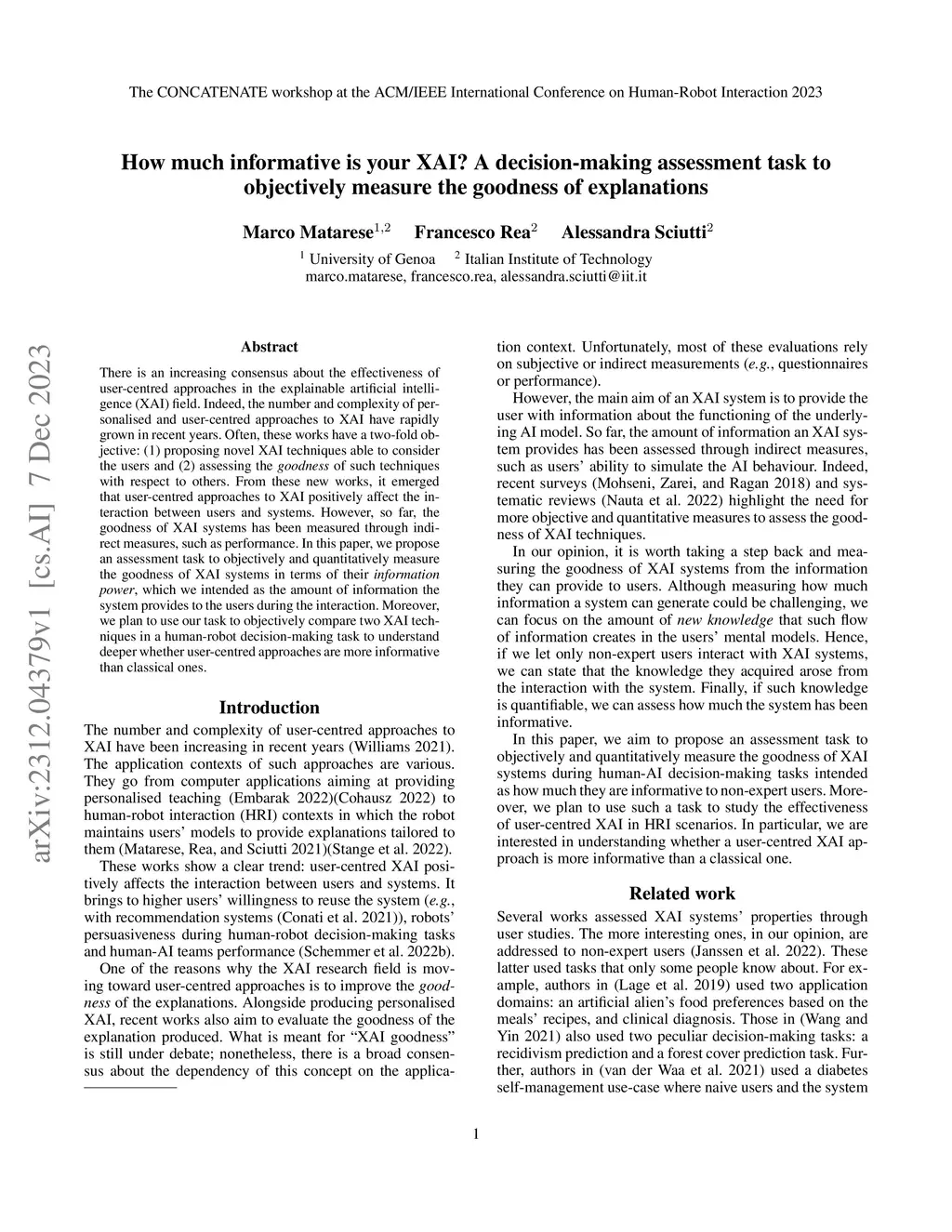 There is an increasing consensus about the effectiveness of user-centred approaches in the explainable artificial intelligence (XAI) field. Indeed, the number and complexity of personalised and user-centred approaches to XAI have rapidly grown in recent years. Often, these works have a two-fold objective: (1) proposing novel XAI techniques able to consider the users and (2) assessing the \textit{goodness} of such techniques with respect to others. From these new works, it emerged that user-centred approaches to XAI positively affect the interaction between users and systems. However, so far, the goodness of XAI systems has been measured through indirect measures, such as performance. In this paper, we propose an assessment task to objectively and quantitatively measure the goodness of XAI systems in terms of their \textit{information power}, which we intended as the amount of information the system provides to the users during the interaction. Moreover, we plan to use our task to objectively compare two XAI techniques in a human-robot decision-making task to understand deeper whether user-centred approaches are more informative than classical ones.