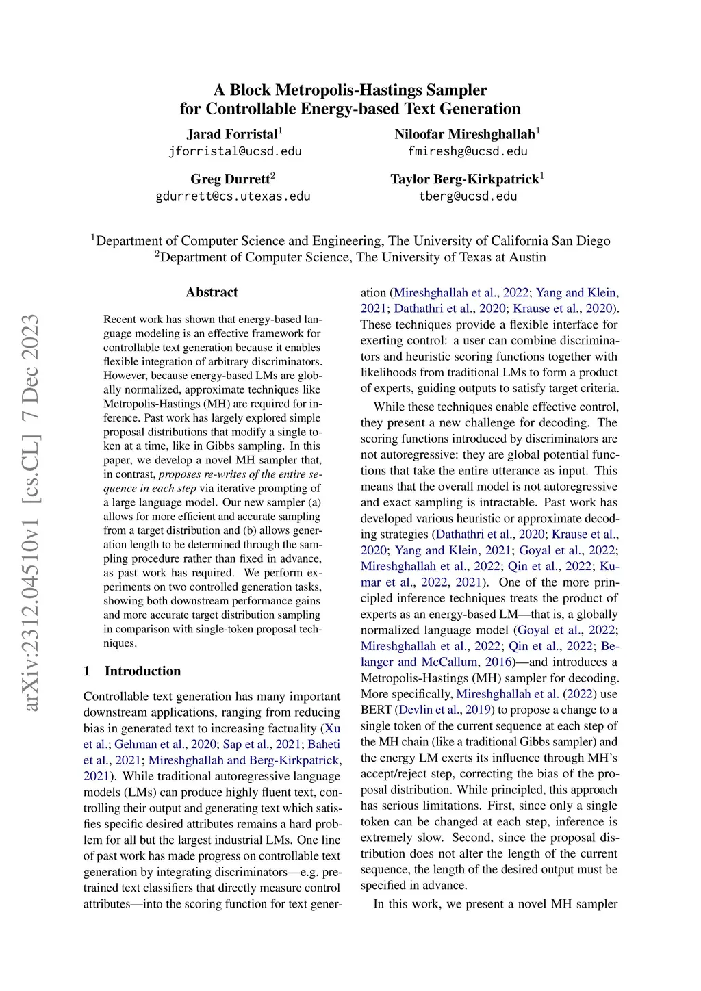 A Block Metropolis-Hastings Sampler for Controllable Energy-based Text