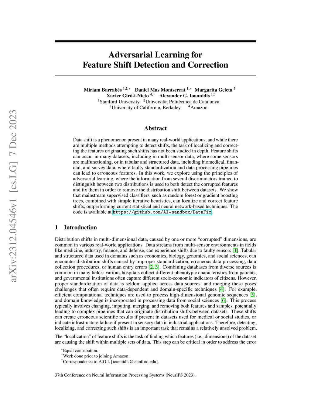 Data shift is a phenomenon present in many real-world applications, and while there are multiple methods attempting to detect shifts, the task of localizing and correcting the features originating such shifts has not been studied in depth. Feature shifts can occur in many datasets, including in multi-sensor data, where some sensors are malfunctioning, or in tabular and structured data, including biomedical, financial, and survey data, where faulty standardization and data processing pipelines can lead to erroneous features. In this work, we explore using the principles of adversarial learning, where the information from several discriminators trained to distinguish between two distributions is used to both detect the corrupted features and fix them in order to remove the distribution shift between datasets. We show that mainstream supervised classifiers, such as random forest or gradient boosting trees, combined with simple iterative heuristics, can localize and correct feature shifts, outperforming current statistical and neural network-based techniques. The code is available at https://github.com/AI-sandbox/DataFix.