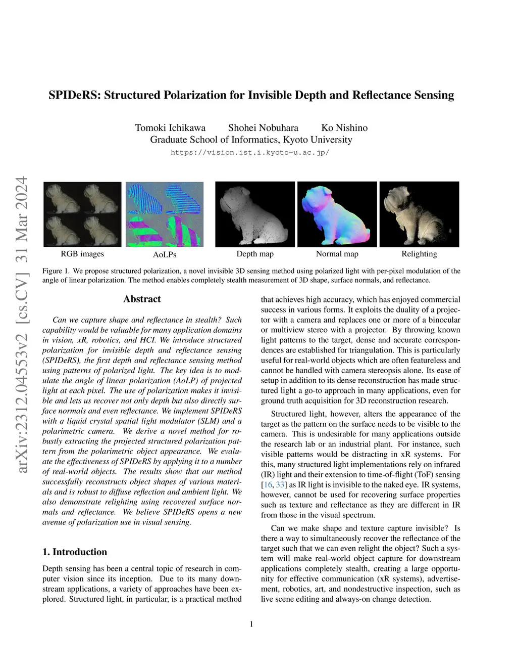 SPIDeRS: Structured Polarization for Invisible Depth and Reflectance