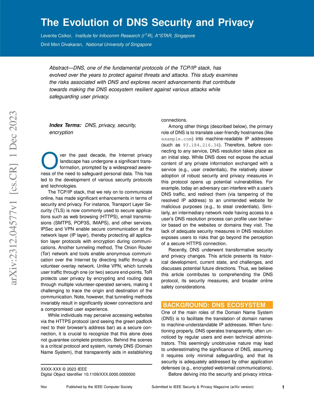 The Evolution of DNS Security and Privacy