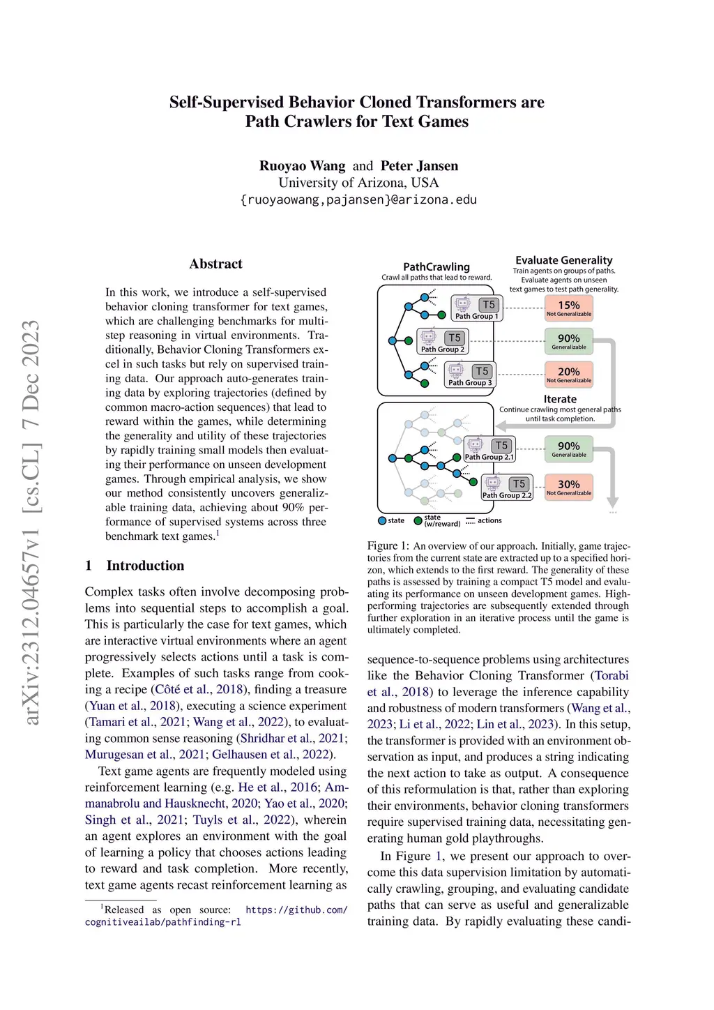 Self-Supervised Behavior Cloned Transformers are Path Crawlers for Text