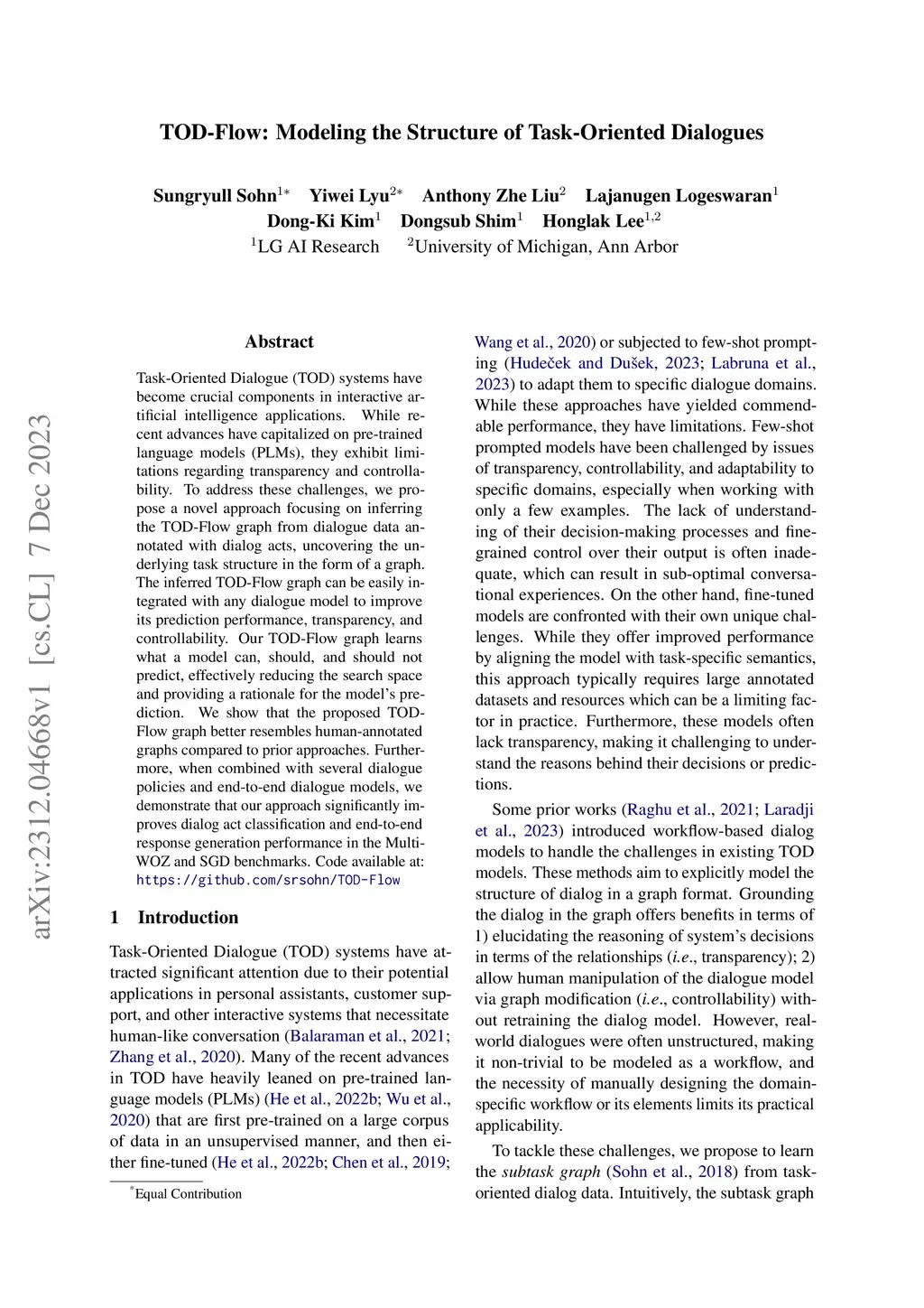 Task-Oriented Dialogue (TOD) systems have become crucial components in interactive artificial intelligence applications. While recent advances have capitalized on pre-trained language models (PLMs), they exhibit limitations regarding transparency and controllability. To address these challenges, we propose a novel approach focusing on inferring the TOD-Flow graph from dialogue data annotated with dialog acts, uncovering the underlying task structure in the form of a graph. The inferred TOD-Flow graph can be easily integrated with any dialogue model to improve its prediction performance, transparency, and controllability. Our TOD-Flow graph learns what a model can, should, and should not predict, effectively reducing the search space and providing a rationale for the model's prediction. We show that the proposed TOD-Flow graph better resembles human-annotated graphs compared to prior approaches. Furthermore, when combined with several dialogue policies and end-to-end dialogue models, we demonstrate that our approach significantly improves dialog act classification and end-to-end response generation performance in the MultiWOZ and SGD benchmarks. Code available at: https://github.com/srsohn/TOD-Flow