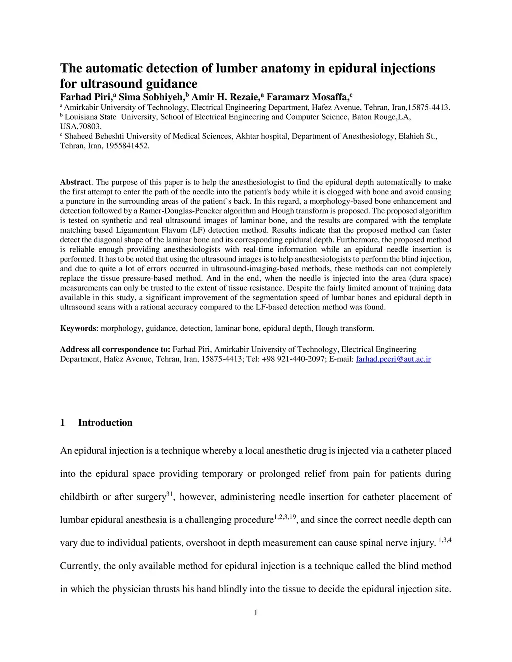The automatic detection of lumber anatomy in epidural injections for